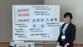 11月18日(火)、6年生の社会科において「租税教室」を実施しました。講師として、大町町町民課税務係の副島様と千住様にお越しいただき、私たちの生活の中にあるさまざまな税について、具体的な例を交えながら分かりやすく教えていただきました。児童たちは、税の種類や使い道について学んだ後、「税のある世の中と無い世の中」を比較した動画を視聴し、税が社会の安全や安心を支える大切な仕組みであることを実感していました。学習後の振り返りでは、「税が無いと困る人がたくさんいることが分かった」「自分たちの暮らしが税によって支えられていることを初めて知った」など、多くの気づきが見られました。今回の学習を通して、児童たちは税の役割や重要性について理解を深めることができました。ご多用の中ご指導くださった副島様、千住様、本当にありがとうございました。
