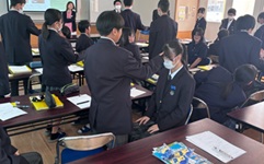 11月26日(水)、7年生を対象に職業講話を行いました。この授業は進路学習の一環として実施したもので、地域で活躍されている(株)ケーブルワンの森様、鵜池農園の鵜池様、織田病院の川﨑様・井上様・松本様・田﨑様にお越しいただきました。森様からは、ケーブルワンの社是である「地域のために」をもとに、“働くことの意義”についてお話しいただきました。鵜池様からは、“きゅうり農家としての苦労と工夫”について、また織田病院の皆様からは、看護師や理学療法士としての“仕事のやりがい”や“大切にしていること”など、貴重なお話を伺うことができました。講師の皆様からは、生徒たちの聞く態度や意欲的な姿勢が素晴らしいというお褒めの言葉もいただきました。地域の皆様、本当に貴重なお話をありがとうございました。