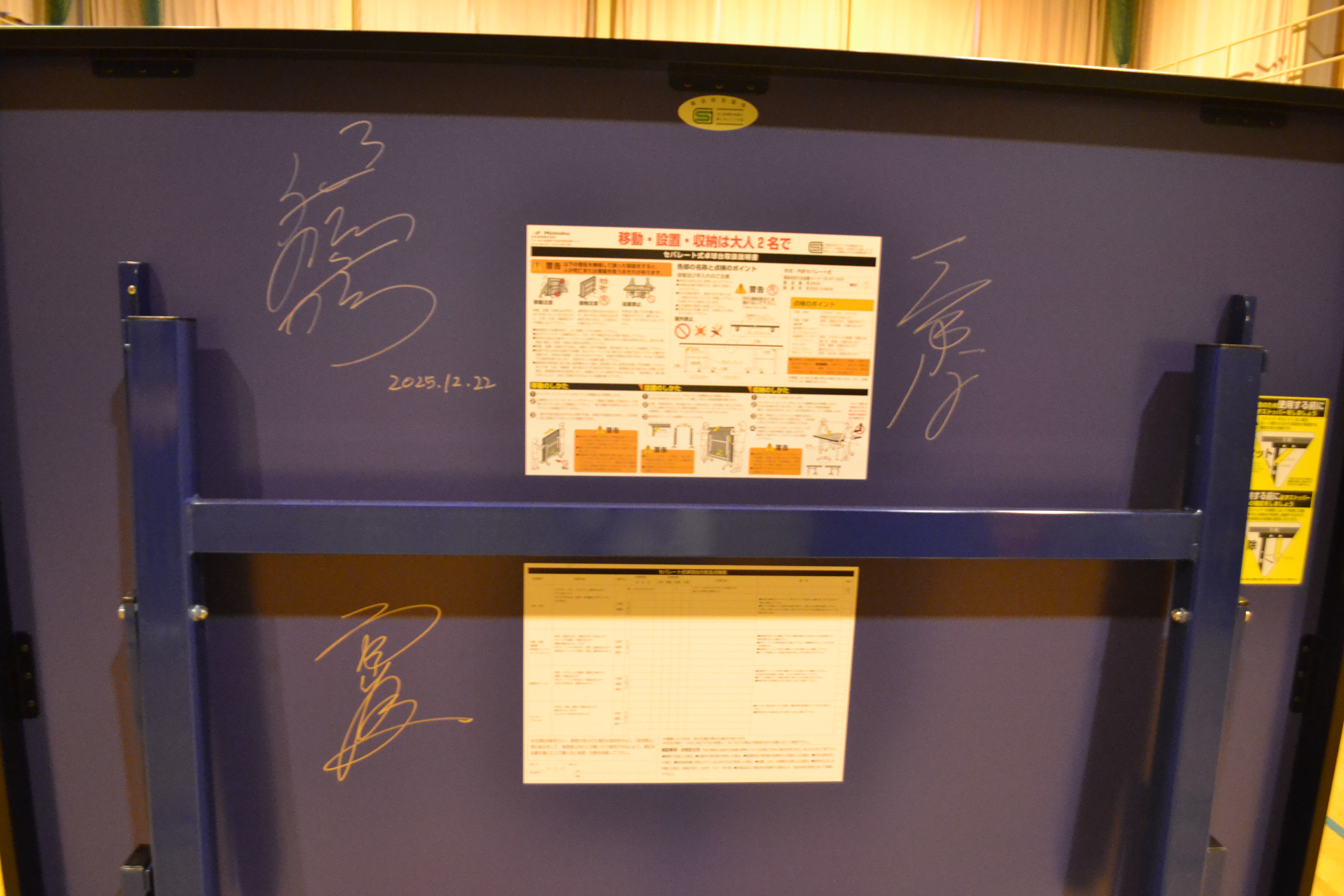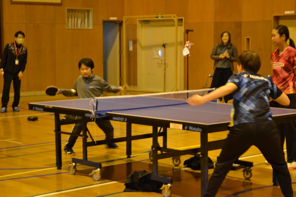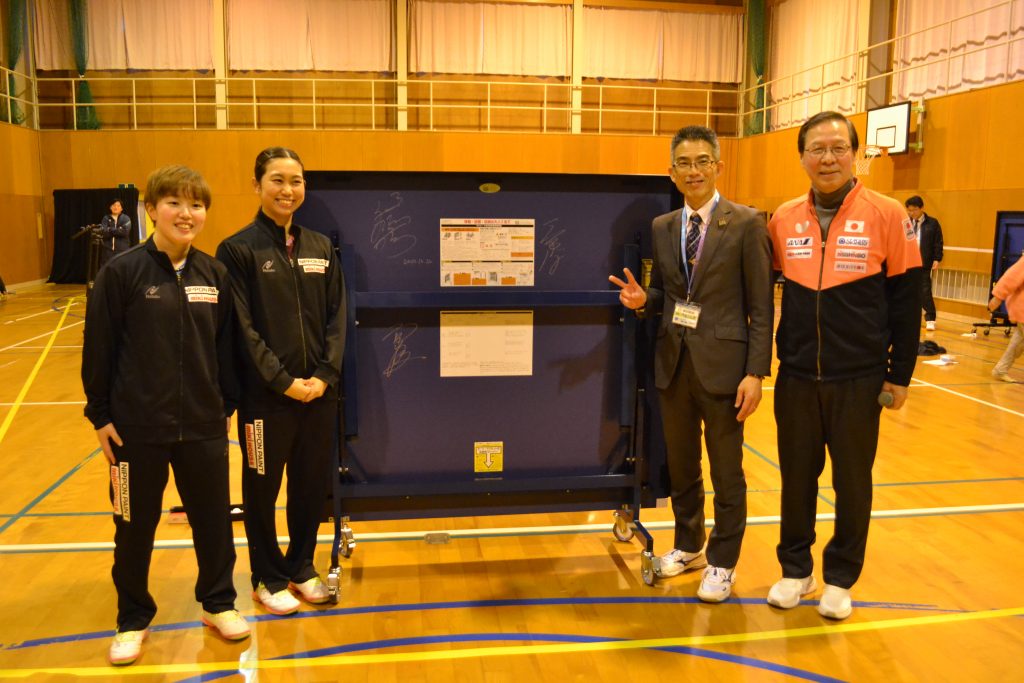 HOME > お知らせ > 卓球台贈呈式 卓球台贈呈式 入力日2025年12月25日 内容 草の根ピンポンプロジェクト「卓球台贈呈式」 全国の15校に選ばれ、新品の卓球台を頂きました。日本卓球協会の理事(元日本代表監督)の宮﨑義仁さん、Tリーグで活躍されている、佐藤瞳選手、芝田沙季選手、ニッタクから坂井さんが来校されました。佐藤選手と芝田選手によるデモンストレーションや児童生徒とのラリー体験など大変盛り上がりました。式後は卓球部の指導もしていただき、貴重な体験ができました。 閲覧数28 前へ