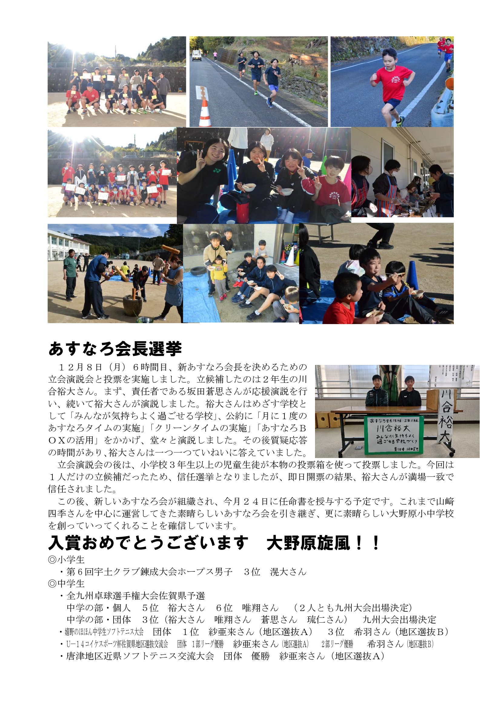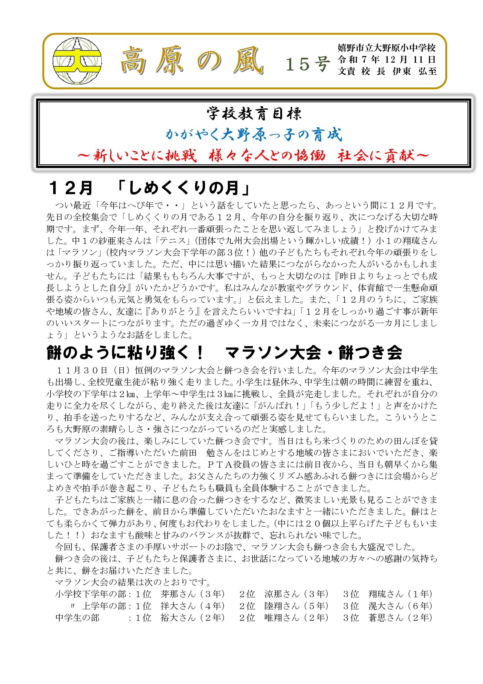 様々なことに挑戦し、多くの人とつながり、地域とともにある大野原小中学校として頑張ってきました。