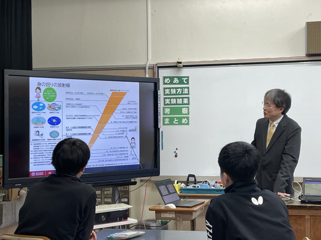 HOME > 中学校 > 1128 原子力出前授業 1128 原子力出前授業 入力日2025年11月28日 内容 今年も、九州大学と日本原子力文化財団の御協力で原子力出前授業を行いました。 霧箱を用いた放射線の軌跡観察はこれまでになくはっきりと観察できて、みんなで感動していました。 閲覧数54 前へ