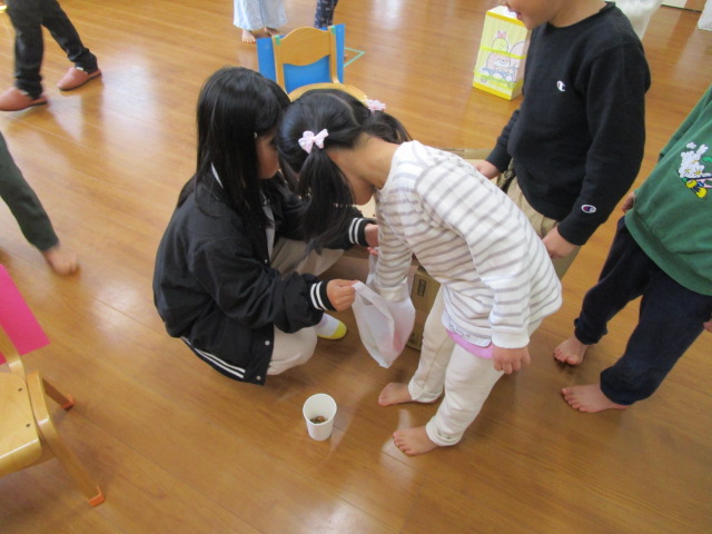 HOME > 小学校 > 1129 秋のおもちゃランド(1・2年) 1129 秋のおもちゃランド(1・2年) 入力日2024年11月30日 内容 今日は1・2年生が生活科の学習で、岩屋保育園を訪問しました。秋の自然物を使った創作おもちゃを持って、「出張 おもちゃランド」を開きました。 はじめは緊張していた子どもたちも徐々に慣れてきて、うまく説明しながら保育園の子どもたちを楽しませることができたようです。 御協力いただいた岩屋保育園様、ありがとうございました。 閲覧数236 前へ 次へ