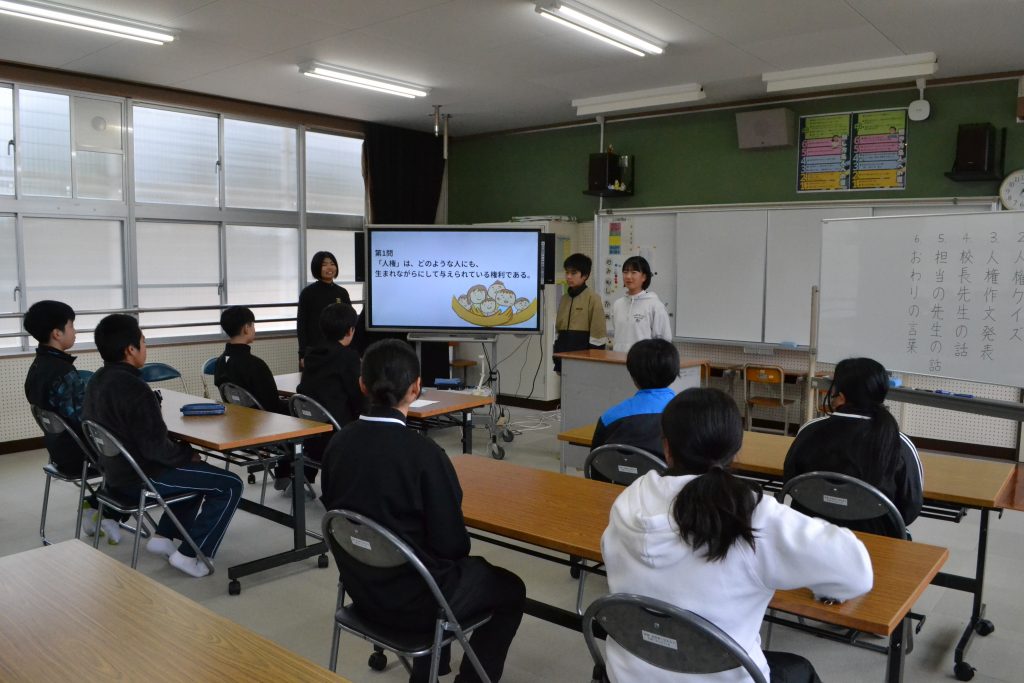 HOME > 中学校 > 1211 人権集会 1211 人権集会 入力日2025年12月11日 内容 人権週間の取組の締めくくりとして、人権集会を開催しました。人権クイズや代表者による人権作文の発表など、充実した学習ができました。 ※途中、オスプレイが飛来し、あまりの騒音の激しさに、集会が中断しました。 閲覧数24 前へ