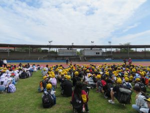 集会後は、いよいよ遠足に出発です。目的地である国見台陸上競技場まで、長い道のりを最後まで一生懸命歩きました。