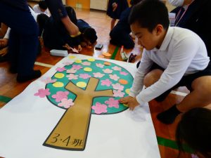 HOME > 教育活動 > イベントギャラリー > 12月6日 人権集会 12月6日 人権集会 入力日2024年12月13日 閲覧数420 12月6日に運営委員会の司会で人権集会を開催しました。はじめに、人権教育担当の先生から、自分と友達の「安心」「自信」「自由」を大切にしてほしいという話があり、各学級の「人権標語」の発表がありました。 次に、運営委員から「やさしさの木」の取組の紹介があり、その後、みんなで「思いやりの歌」を歌いました。 最後に、たてわり班ごとに「やさしさの花」「やさしさの美」を書きました。子どもたちは優しい表情で、よさを見つけ合う活動を楽しんでいました。とても温かな時間となりました。 前へ 一覧へ戻る 次へ