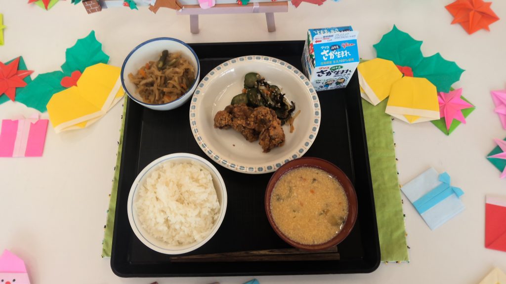 本日は、「校長と語る会」が開かれ、保護者の皆様には給食を試食していただきました。子どもたちの誕生日リクエスト給食でもリクエストが出る人気メニューのから揚げです♪日頃、幼児児童生徒の皆さんが食べている給食を試食していただくことで、佐賀県立ろう学校の給食や食育について知っていただく機会となりました。ご参加のみなさまありがとうございました。