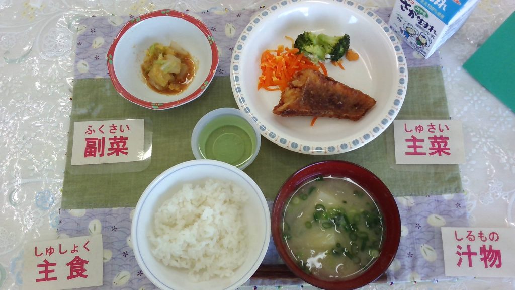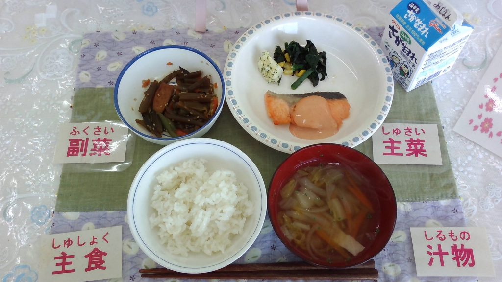 2月2日(木) ごはん ふりかけ 牛乳 ささみのタルタルソース焼き ソテー ひじきの炒め煮 みそ汁