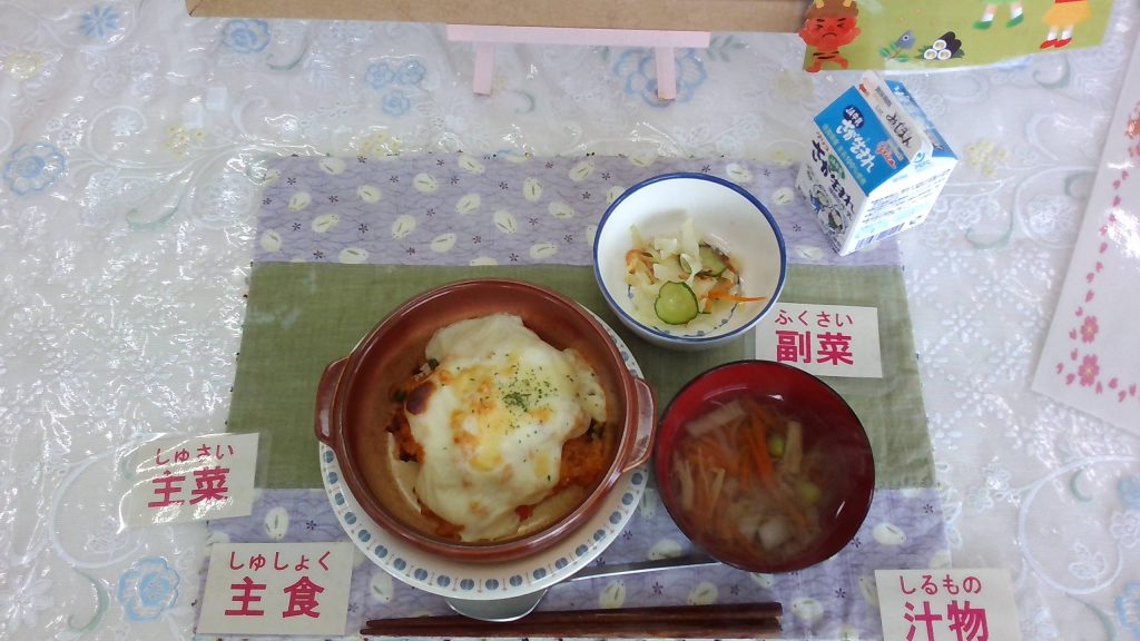 2月24日(金) ドリア 牛乳 野菜サラダ 野菜スープ