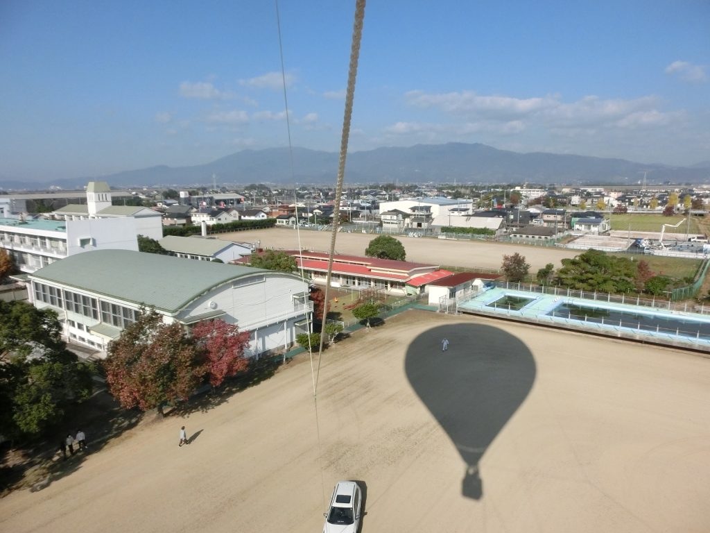 11月15日(土)、学校公開の日の1時間目は、熱気球インストラクターの沼田様はじめ、スタッフの方々の温かいサポートによるバルーン係留体験がありました。この日は、天気もよく、風も弱かったため、絶好のバルーン日和でした。子どもたちや参観の方々、職員も搭乗することができました。最初は怖がっていた子どもたちも、乗った後は笑顔があふれ、とても楽しく貴重な体験ができました。早速、この体験をこの後の授業の中で取り扱うことができ、体験と「ことば」・「気持ち」をしっかりと結びつけることができました。
