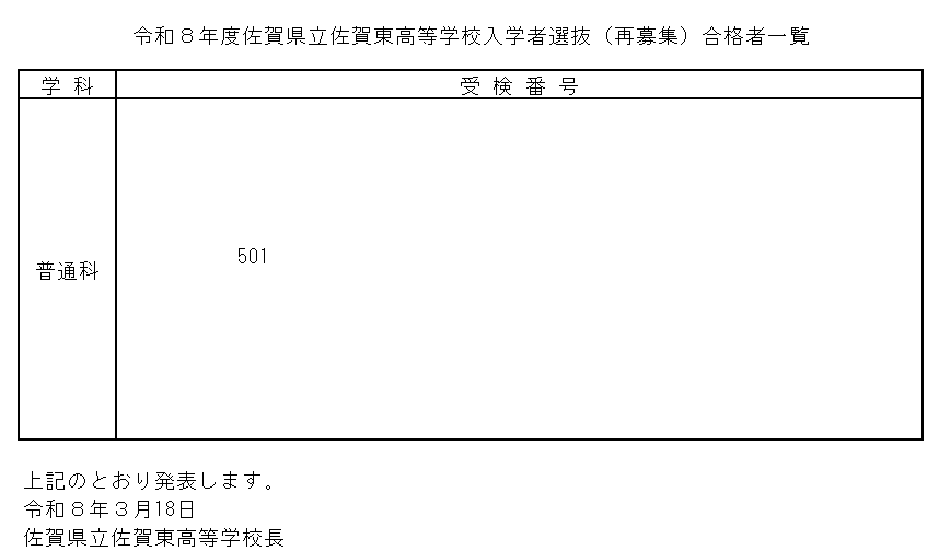 令和8年度再募集合格発表