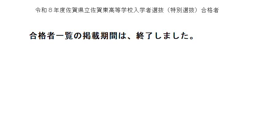 令和8年度特別選抜合格者発表