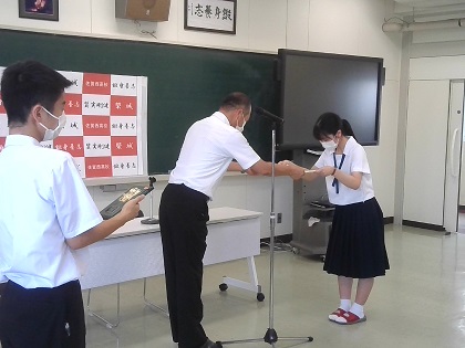 7月20日、表彰と全国大会出場者壮行会・終業式をオンライン形式で行いました。
