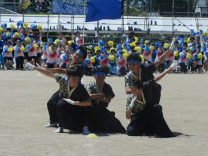 やぐらに集う1・2年生に、最後の挨拶を送るストームリーダーたち