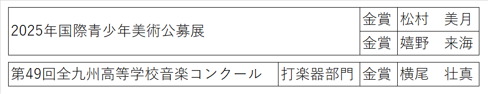HOME > 学校生活 > 西高生の活躍(表彰) > 令和8年1月表彰 令和8年1月表彰 入力日2026年1月13日 内容 1. 運動部表彰 2. 文化部表彰 3. その他表彰 <運動部表彰> <文化部表彰> <その他表彰> 閲覧数227 前へ