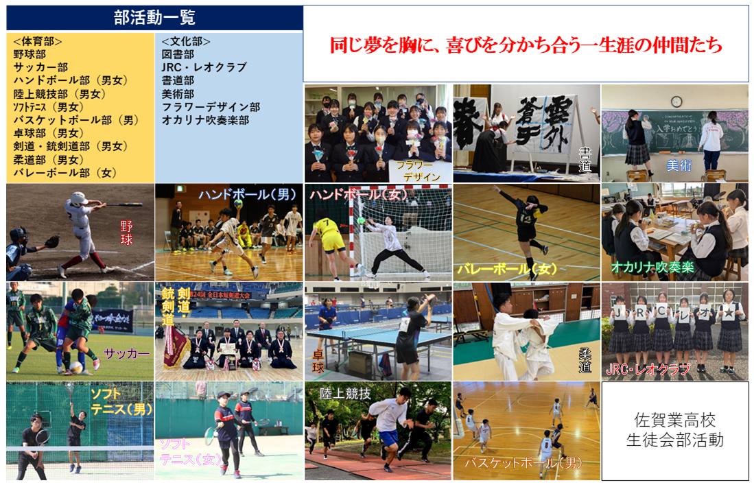柔道部(男子・女子) 剣道部(男子・女子) ハンドボール部(男子・女子) サッカー部(男子) ソフトテニス部(男子・女子) バスケットボール部(男子) バレーボール部(女子) 野球部 卓球部(男子・女子) 陸上部(男子・女子)