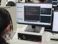 Python言語のプログラミングに挑戦する生徒たち。基本的な文法を学びながら、自分の考えをコードとして形にしていく過程です。エラーに戸惑いながらも、原因を探り解決する経験が理解を深めていってます。
