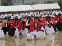 体育祭、昨日の晴天から一変し朝から雨が降り続いている状況ではありましたが、実施することを決定しました。プログラムの短縮やグラウンド状況の悪い中でしたが、生徒たちはどの競技においても一生懸命な姿を見せてくれました。応援合戦は各団とも工夫を凝らした内容に仕上がっており、団別対抗リレーでは各団一丸となって勝ち負け関係なく歓喜し、生徒たちにとっても忘れられない体育祭になったことと思います。