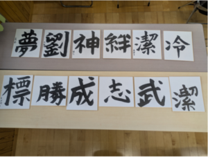 なかには、初めて筆を使って字を書いた生徒もいたようでしたが、自分の好きな字に気持ちを込め、丁寧にゆっくりと書きました。その時の表情は真剣そのものでした。