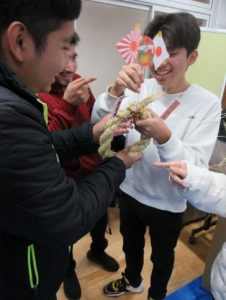 新栄(しんえい)あいれふくらぶの皆(みな)さんとしめ縄(なわ)をつくりました!