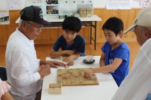 今日ボランティアでお見えになっている老人会の皆さんとの対戦が、さっそく始まりました。