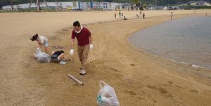 プラスチックの特性から、静電気や風の力を利用して集められないのかなあ、でも海中に入ったらそれも難しいなあ、などと考えにふけりながら、1時間ほどの清掃活動を頑張りました。