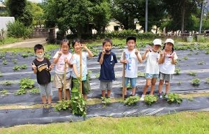 この日は天気が良かったので、畑の草取りもできました。この結果は、次の日の朝の会で、クラスの子供たちに報告をして、2年生みんなでサツマイモの成長を確認します。11月のいもほりが今から楽しみです。