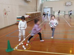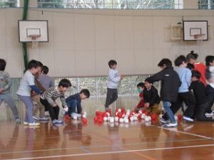 HOME > 教育活動 > イベントギャラリー > スポーツチャレンジ スポーツチャレンジ 入力日2026年2月16日 閲覧数105 体育委員会の児童が、スポーツチャレンジを計画し、実施しています。各学年、日替わりで体育館に集合し、楽しい時間を過ごしています。今回の種目は、「ボール取り合戦2026」 ルールは次のとおりです。 ①真ん中のボールを陣地に持っていく。 ②真ん中にあるボールがなくなったら、相手の陣地からボールを取る。 ③時間になった時、自分達の陣地に相手より多くの数ボールを運んだチームの勝ち この日は、1年生が楽しく取り組んでいました。 前へ 一覧へ戻る 次へ