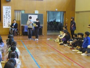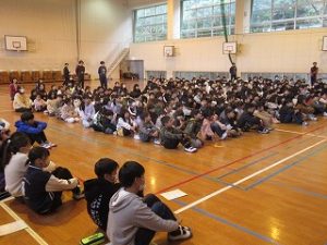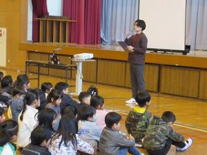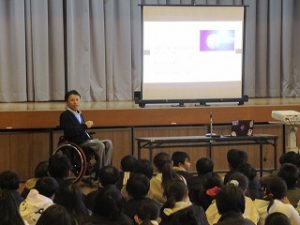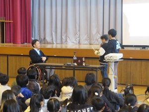 令和7年11月18日(火)に人権集会を行いました。この日は、厳木市民センターにお勤めの松本さんを講師にお招きし、全校児童に向けてご講話をいただきました。野球に打ち込んだ少年時代から、交通事故で車椅子の生活を余儀なくされた経験、唐津市の職員として勤務しながら、車椅子ソフトボール日本代表として活躍されている現在の様子など、貴重なお話を聞かせていただきました。また、さまざまな障害のある方の気持ちや、必要な配慮について、子供たちに分かりやすく教えていただきました。今日の集会を通して、相手の状況を考え、思いやりの気持ちで接することの大切さに気付くとともに、成和小のみんなが心地よく暮らせるように、自分でできることをしようという気持ちを高めることができました。