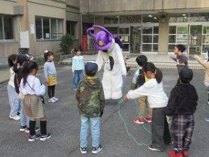 HOME > 教育活動 > イベントギャラリー > 唐ワンくん挨拶運動 唐ワンくん挨拶運動 入力日2025年11月26日 閲覧数48 令和7年11月26日(水)唐ワンくんが、朝の挨拶運動に来校してくれました。子供たちは大喜びです。タッチしたり、握手したり、一緒になわとびをしたりしました。 前へ 一覧へ戻る 次へ