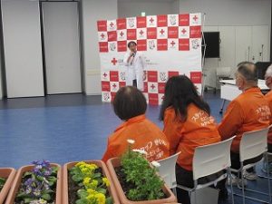 HOME > 教育活動 > イベントギャラリー > 日赤へ花贈呈 日赤へ花贈呈 入力日2026年2月5日 閲覧数107 令和8年2月5日(木)6年生と成和地区まちづくり協議会の皆様で植えた花を、唐津赤十字病院に贈呈しました。 この贈呈は、昨年度、日赤の職員様が「PUSHコース研修講話」を6年生に向けて開催したことがきっかけで始まり、今年で2年目です。今回、そのお礼を兼ねて、卒業記念で植えた花を、地域交流の証として贈呈させていただきました。お花は、日赤の正面に飾られることになりました。これから、外来の患者さんや入院患者さん、職員の皆様の癒しや励みになれば幸いです。 前へ 一覧へ戻る 次へ