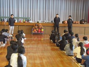 HOME > 教育活動 > イベントギャラリー > 6年生バスケ体験 6年生バスケ体験 入力日2025年12月2日 閲覧数9 令和7年11月28日(金)6年生がバスケットボールの体験学習を行いました。 この日は、佐賀バルーナーズから2名を講師に招き、プロの指導による体験学習となりました。子供たちは、ペアやグループで、ゲームを交えた楽しい練習メニューのもと、元気にプレーしていました。 一覧へ戻る 次へ