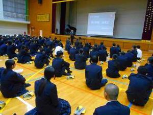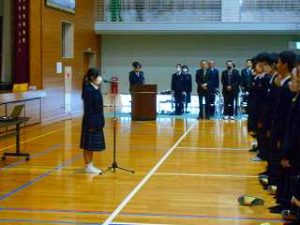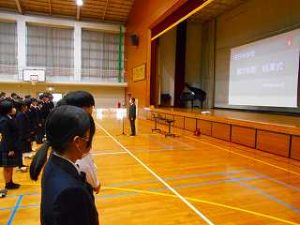 3学期の重点目標として、元気な挨拶が響く学校にしてほしいこと、3年生は進学に向けて、1・2年生は新学年の準備期間として自覚を持ち、意識した生活を送ってほしいことを伝えました。
