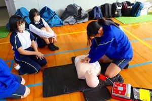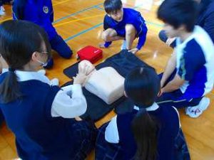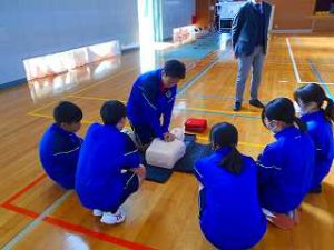HOME > 学校生活の様子 > 0119.2年救急法講習会 0119.2年救急法講習会 入力日2026年1月21日 閲覧数45 日赤佐賀県支部から講師の先生を招き、救急法講習会を2年生で実施しました。 救急救命は、中学生でもきちんとした知識があれば対応できるため、 AEDの使い方、背部叩打法(背中を叩く)と腹部突き上げ法(ハイムリック法)について実習を行いました。 生徒は、中学生でも大切な命を救うことができることを知り、緊急時には落ち着いて対処していきたいと感想を書いていました。 前へ 一覧へ戻る 次へ