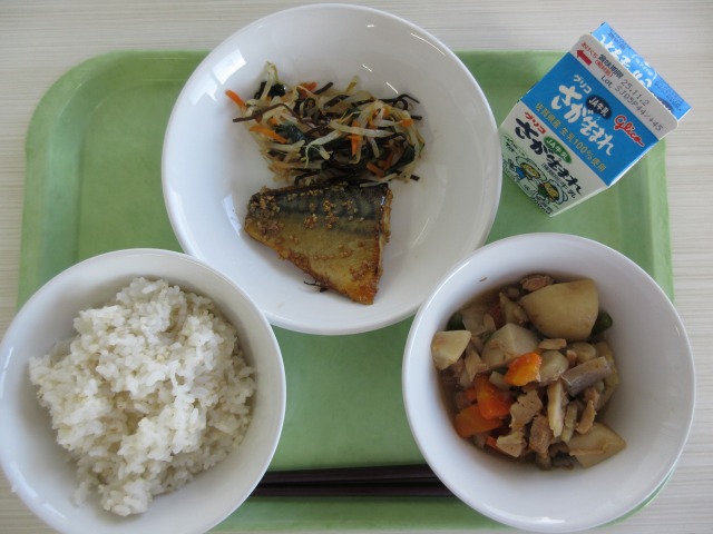 HOME > 学校生活 > 今日の給食 > 10月21日 10月21日 入力日2025年10月22日 閲覧数36 10月21日(火)献立 ・麦御飯 ・牛乳 ・筑前煮 ・鯖のごまみそ煮 ・l小松菜の塩昆布和え ☆今日は九州味めぐりの日で、福岡県を紹介しました。 前へ 一覧へ戻る 次へ