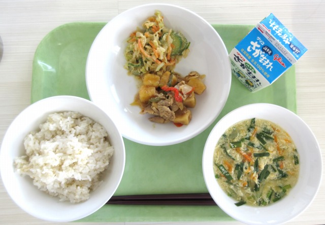 HOME > 学校生活 > 今日の給食 > 10月30日 10月30日 入力日2025年11月5日 閲覧数7 10月30日(木)献立 ・麦御飯 ・牛乳 ・高野豆腐と豚肉の甘酢炒め ・キャベツのごま和え ・にら玉汁 前へ 一覧へ戻る 次へ