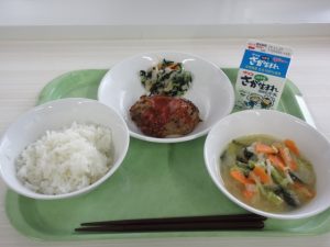 HOME > 学校生活 > 今日の給食 > 11月12日 11月12日 入力日2025年11月13日 閲覧数33 11月12日(水)献立 ・御飯 ・牛乳 ・テンペ入りハンバーグ ・みのりの磯サラダ ・生揚げと野菜の味噌汁 ☆今日は白石食の日です。 ・御飯 新米のひなたまる ・白石町産のテンペを使ったハンバーグ ・璃の香と海苔とれんこんを使った和え物 など、白石町や佐賀県で作られた食材を たくさん使用した献立です。 前へ 一覧へ戻る 次へ