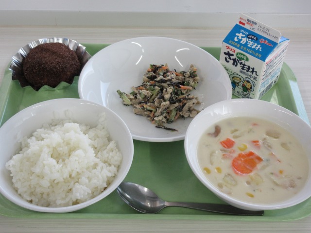 HOME > 学校生活 > 今日の給食 > 2月13日 2月13日 入力日2026年2月13日 閲覧数23 2月13日(金)献立 ・御飯(さがびより) ・牛乳 ・冬野菜のクリームスープ ・ごぼうサラダ ・ミニココア揚げパン ☆今日はハッピーキャロットの日です。 前へ 一覧へ戻る 次へ