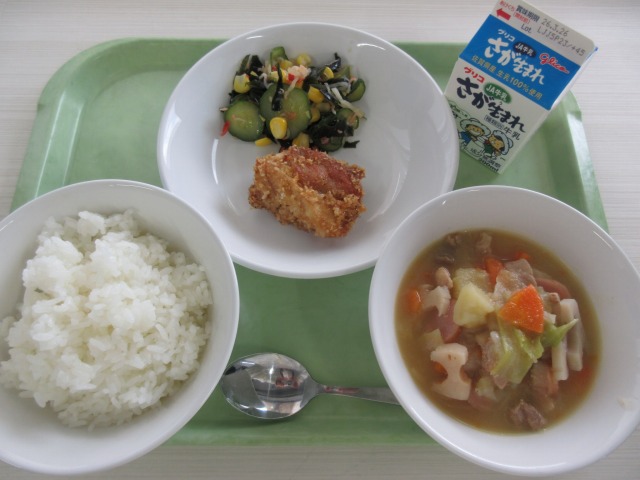 HOME > 学校生活 > 今日の給食 > 3月13日 3月13日 入力日2026年3月13日 閲覧数6 3月13日(金)献立 ・御飯 ・牛乳 ・手作りチキンカツ ・わかめとコーンのサラダ ・ポトフ 一覧へ戻る 次へ