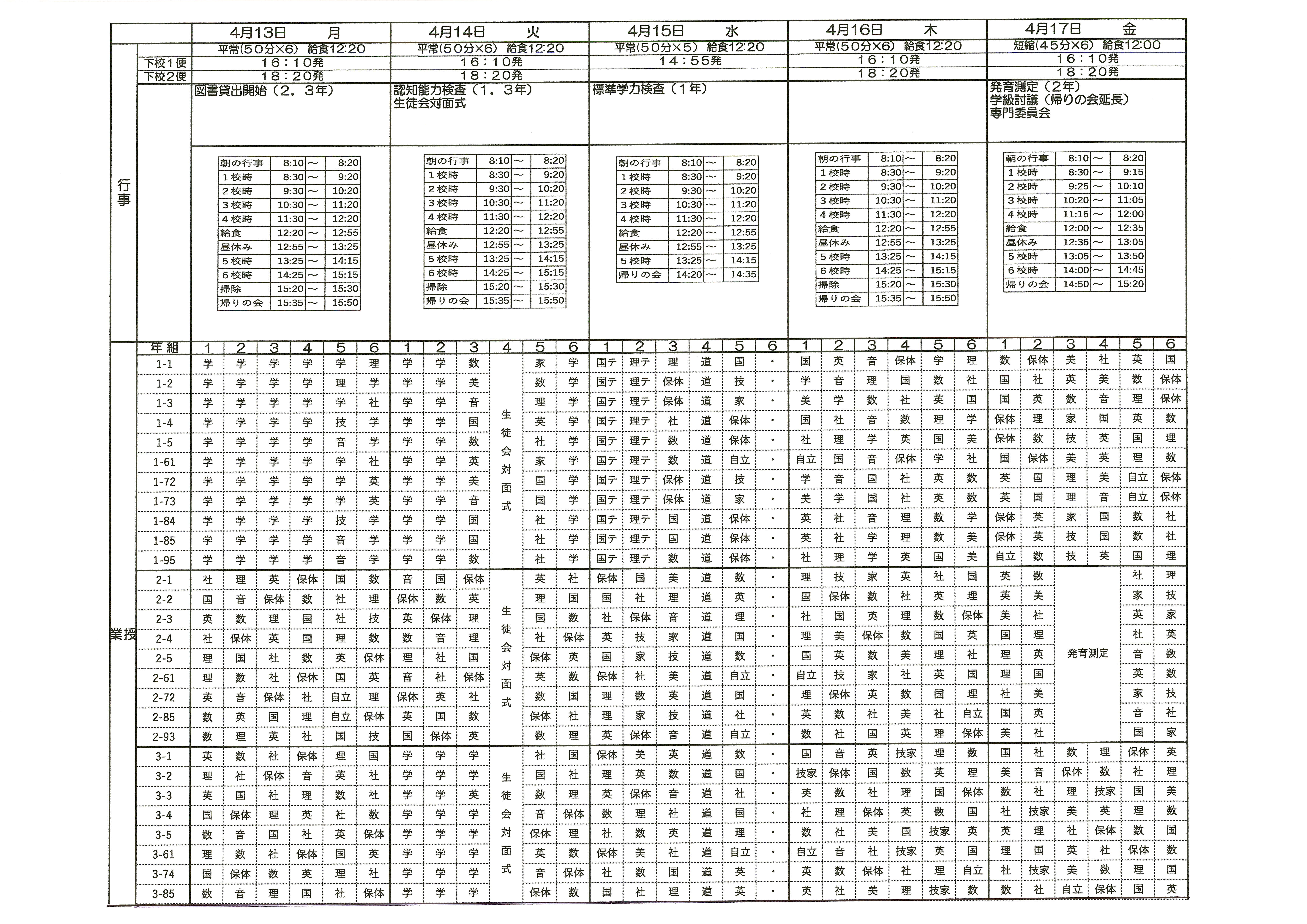 時間割(4/13~4/17)