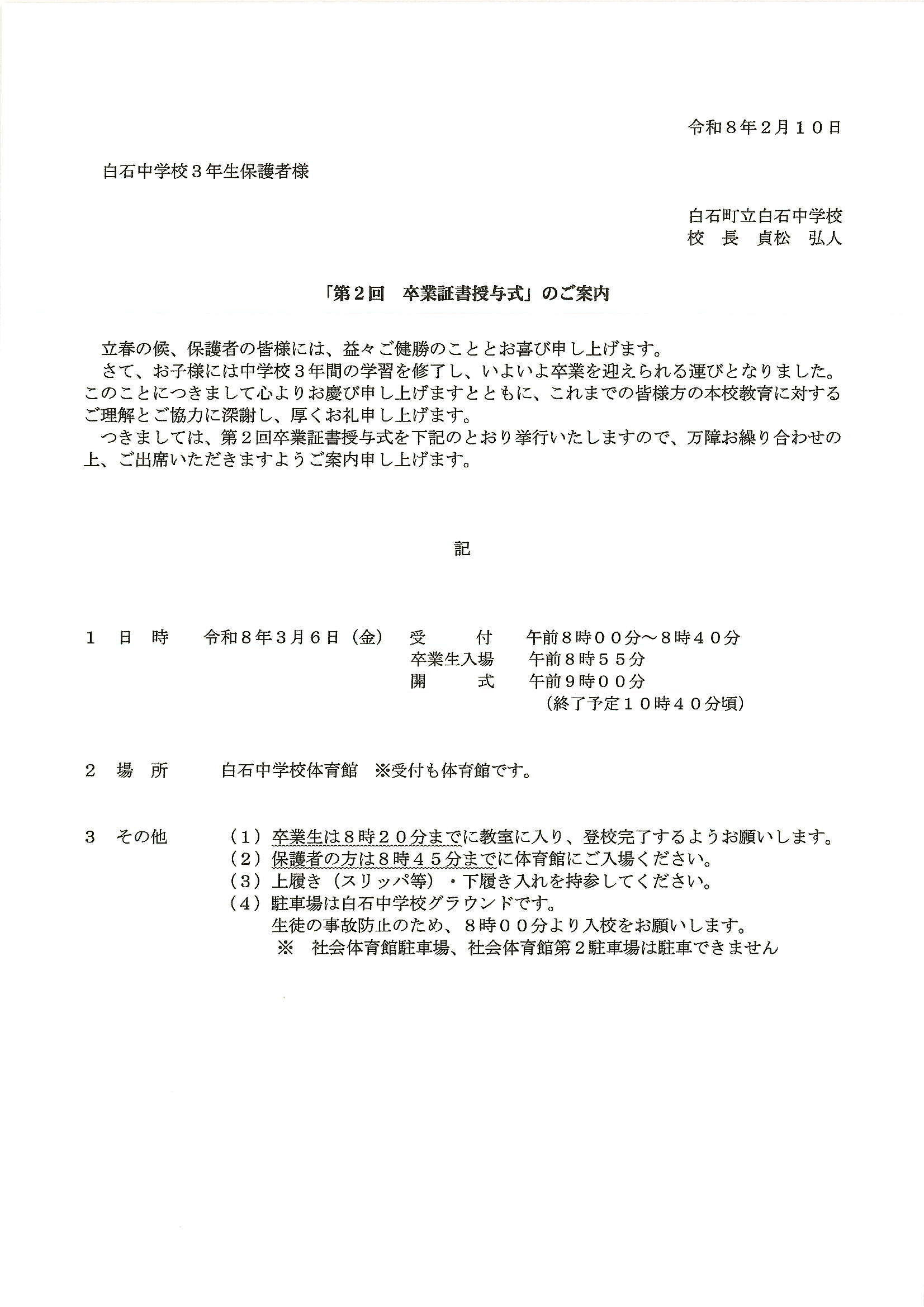 第2回卒業証書授与式のご案内