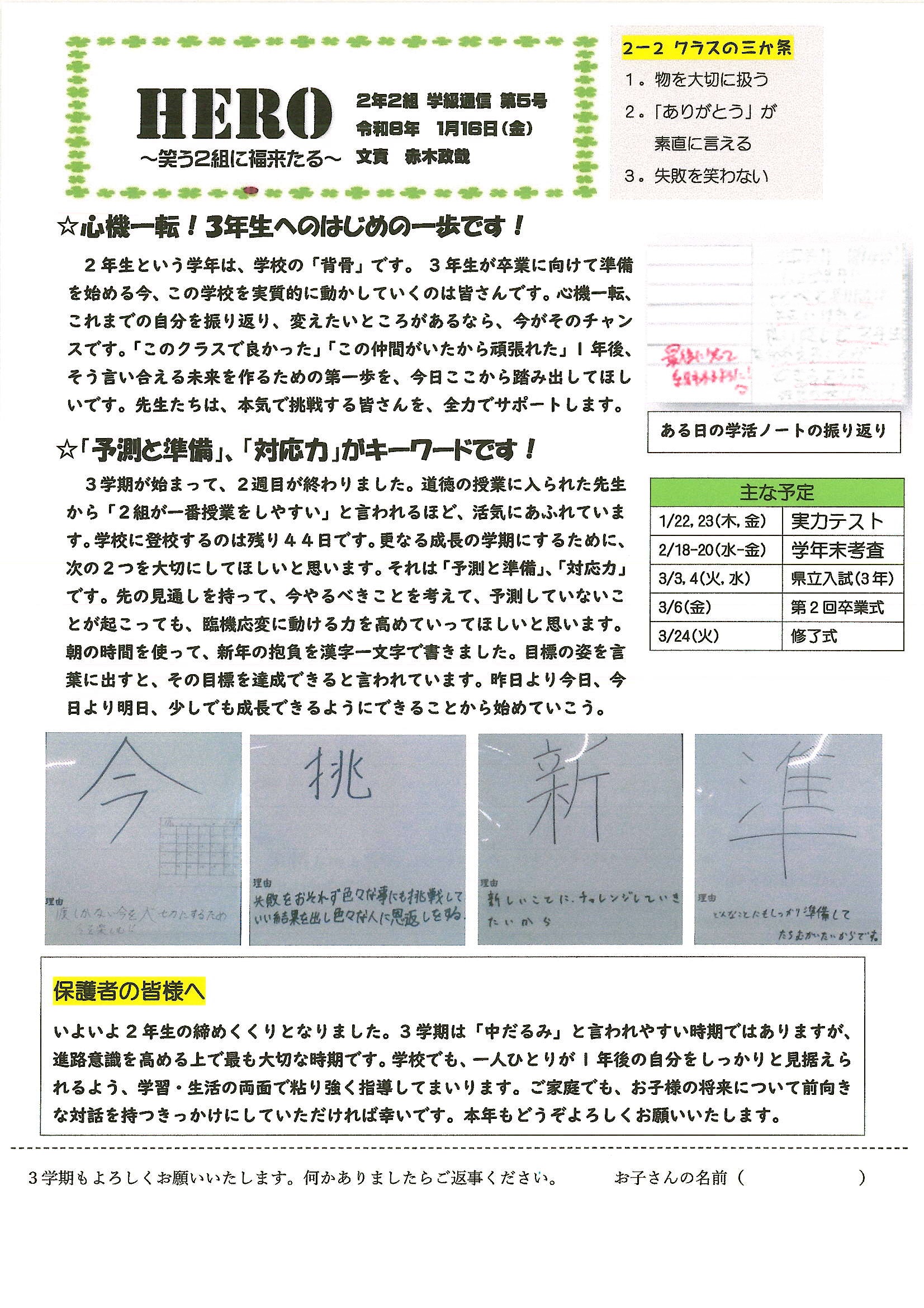 3年生からのお知らせ