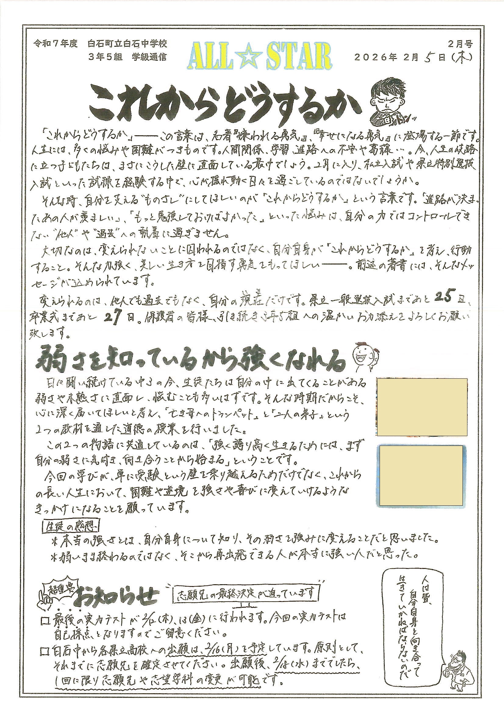 3年生からのお知らせ