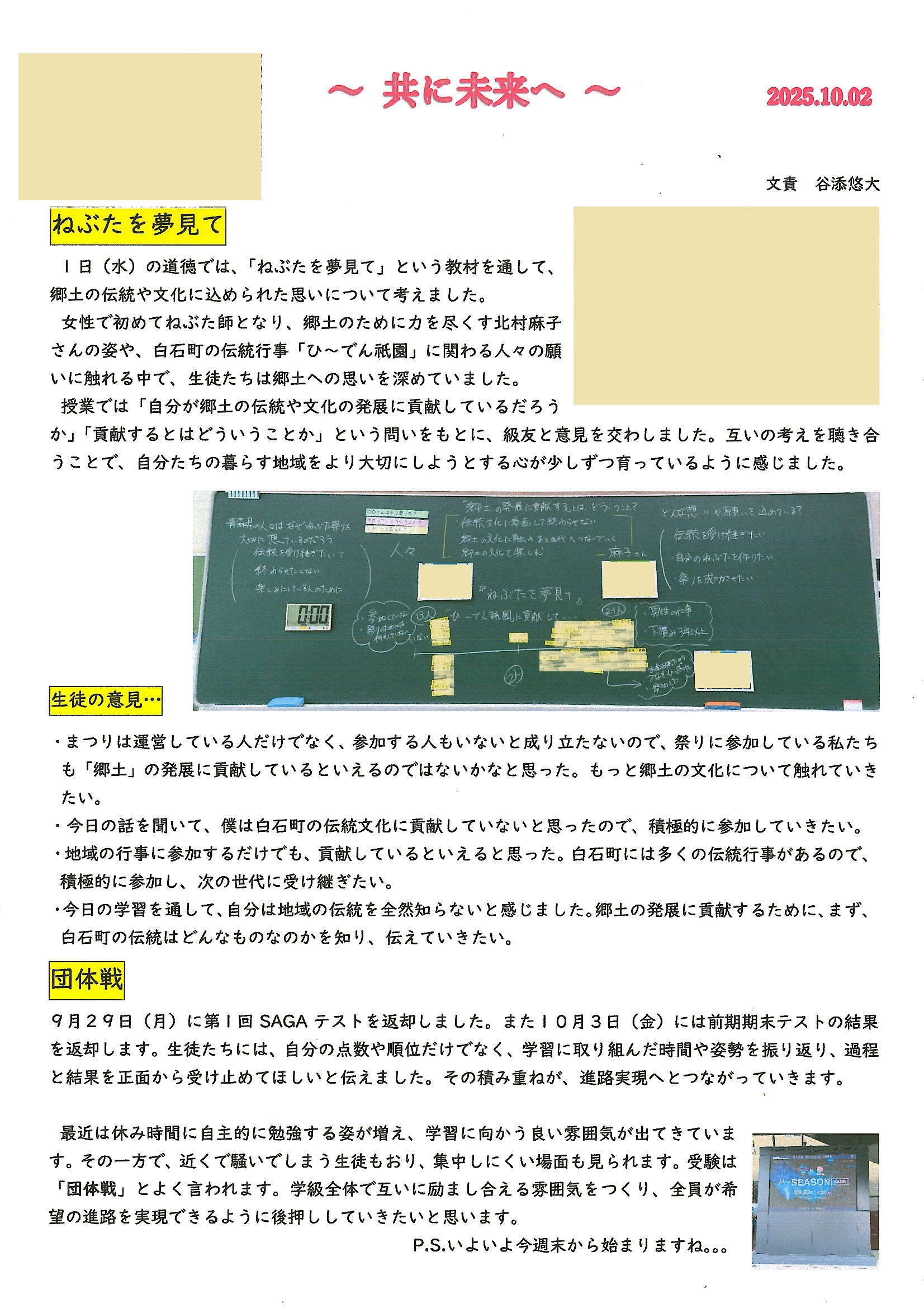 HOME > 学年からのお知らせ > 3年生からのお知らせ > 1002.3年2組学級通信 1002.3年2組学級通信 入力日2025年10月8日 内容EPSON MFP image 閲覧数24 前へ 次へ