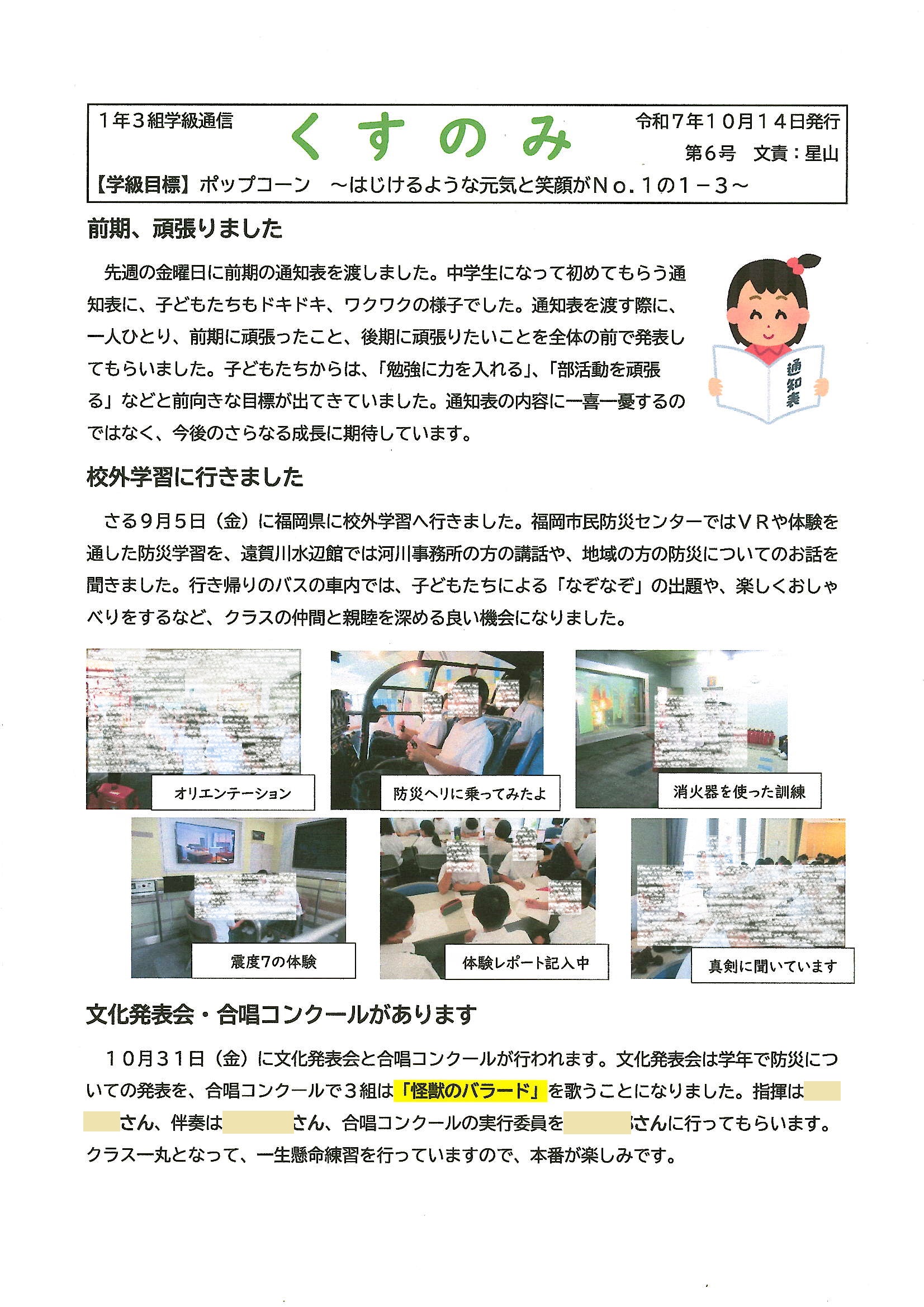 1014.1年3組学級通信