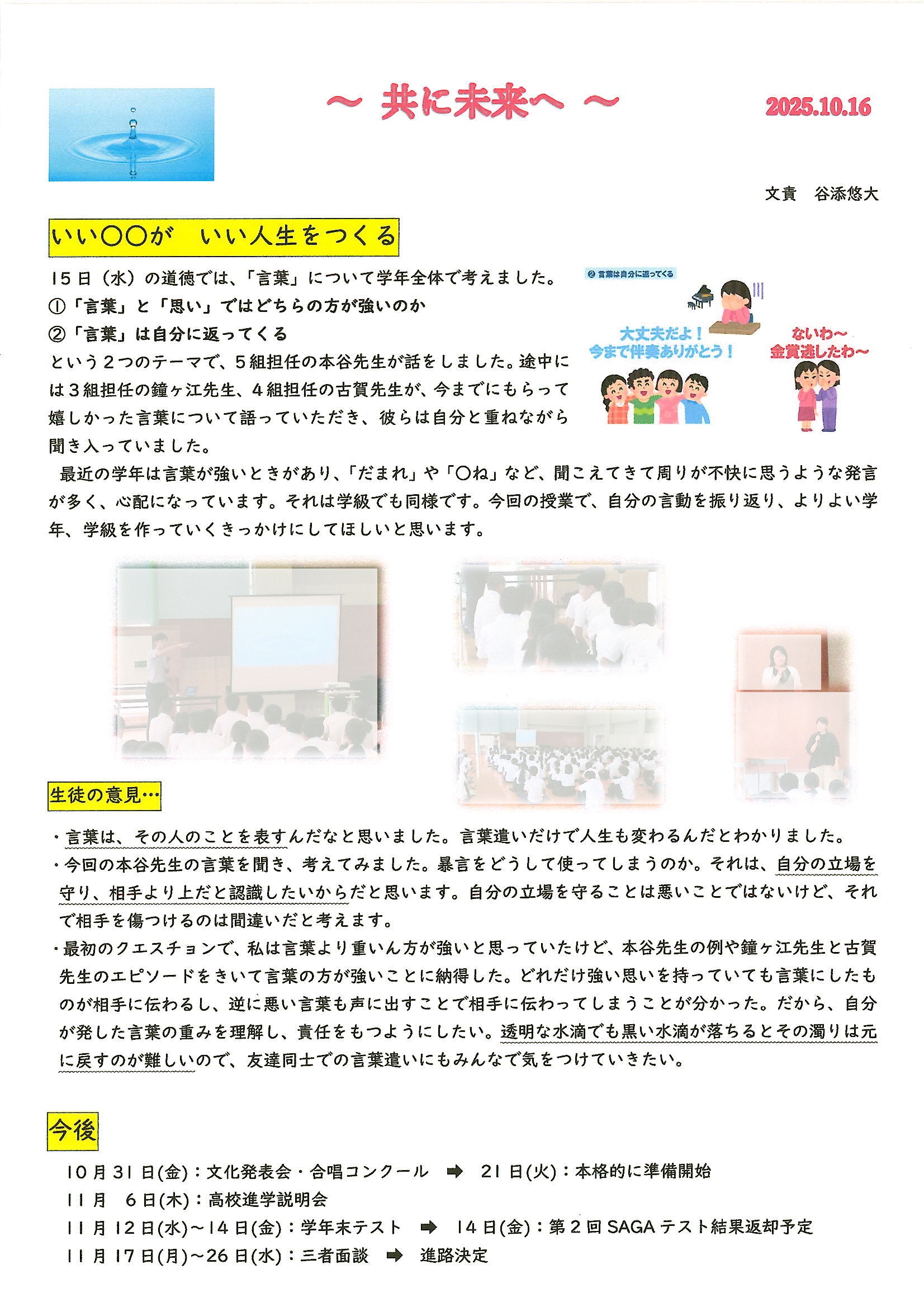 1016.3年2組学級通信