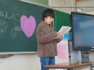 そして発表本番の授業参観では、たくさんの保護者様の前で家族への感謝の気持ちを発表しました。当日の朝から、そわそわして緊張していた子どもたちも発表後には、笑顔で家族へプレゼントを渡しに行っていました。来られなかったご家庭もお家で、話をするきっかけになればと思います。