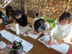 4年生は、志田焼の里で四寸皿に絵付け体験を行い、世界で一つだけのオリジナルのお皿を作りました。