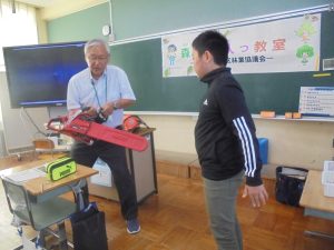 HOME > イベントギャラリー > R7.10.21森川海人っ教室(5年生) R7.10.21森川海人っ教室(5年生) 入力日2025年12月3日 閲覧数226 杵島武雄地区林業協議会の方に来ていただき、林業について学びました。 前へ 一覧へ戻る 次へ