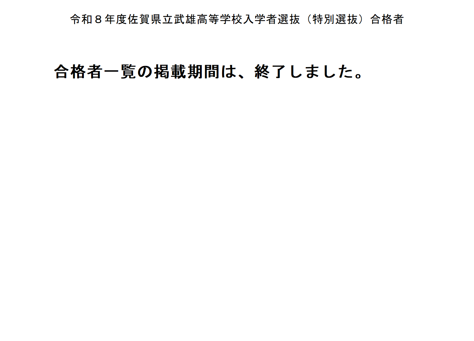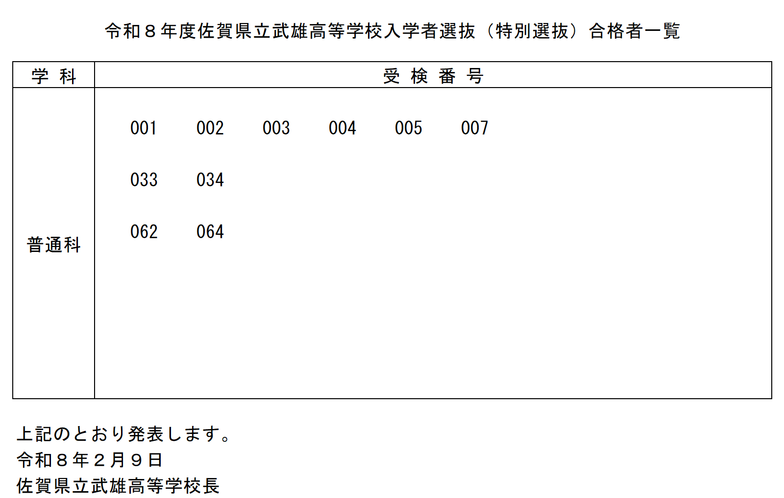 令和8年度特別選抜合格者発表