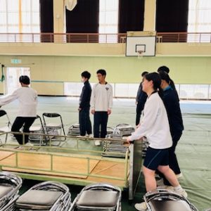 HOME > 青陵トピックス > 【今週の一枚】 令和8年2月第4週 【今週の一枚】 令和8年2月第4週 入力日2026年2月27日 閲覧数4,513 今週は28日の土曜日に武雄高校の卒業式が青陵中学校の体育館で行われます。それに伴い、2,3年生で会場準備を行いました。フロアシートを敷いて、椅子を出して並べ、紅白幕やステージを整えるなど、大変な作業を積極的に行ってくれました。 3月14日には中学校の卒業式があるため、その時は1,2年生が頑張ってくれると期待しています。 前へ 一覧へ戻る 次へ